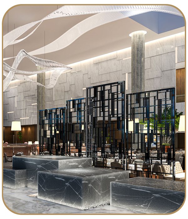 The Lounge Areas feature sophisticated, elegantly furnished lounge areas where residents can unwind or gather with friends, family, and neighbors. Designed with comfort and style in mind, these lounges provide a warm and inviting ambiance for casual meet-ups, informal gatherings, or just a quiet place to read or enjoy a cup of coffee